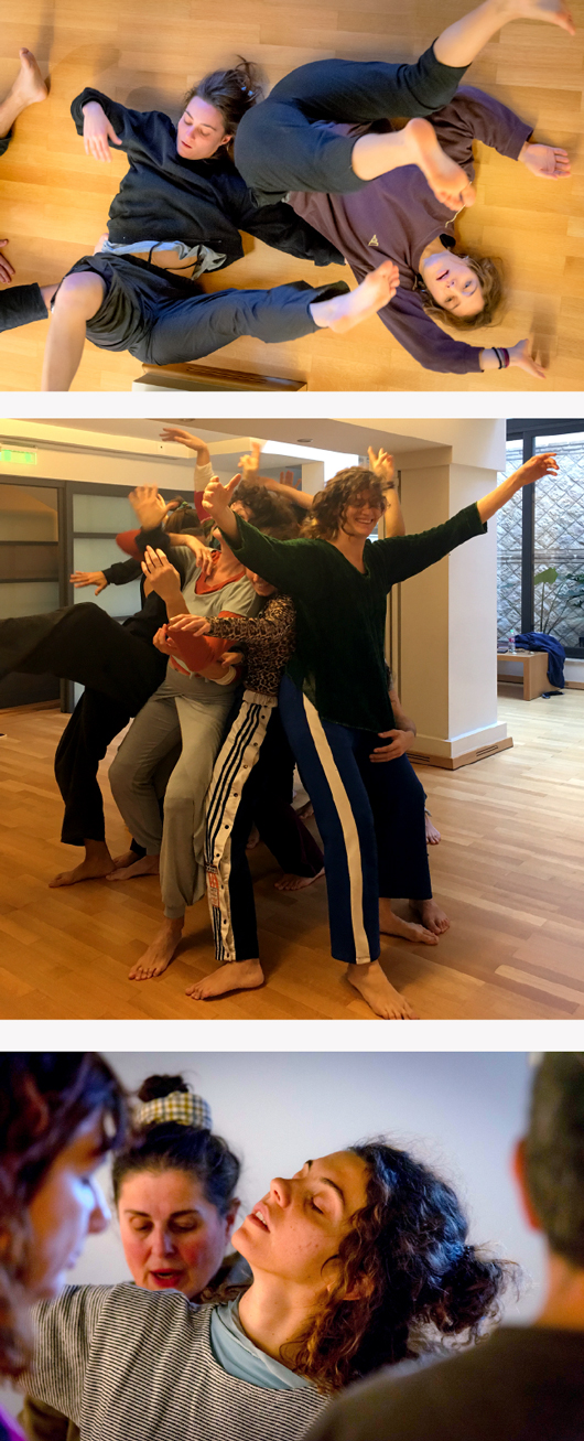 Α. Εκπαιδευτικό εργαστήριο που εστιάζει στη διδασκαλία του Contact Improvisation με βάση τις πρακτικές των Somatics και απευθύνεται σε χορευτές και αυτοσχεδιαστές που έχουν ήδη εμπειρία στην πρακτική του CI σε μεσαίο ως προχωρημένο επίπεδο.