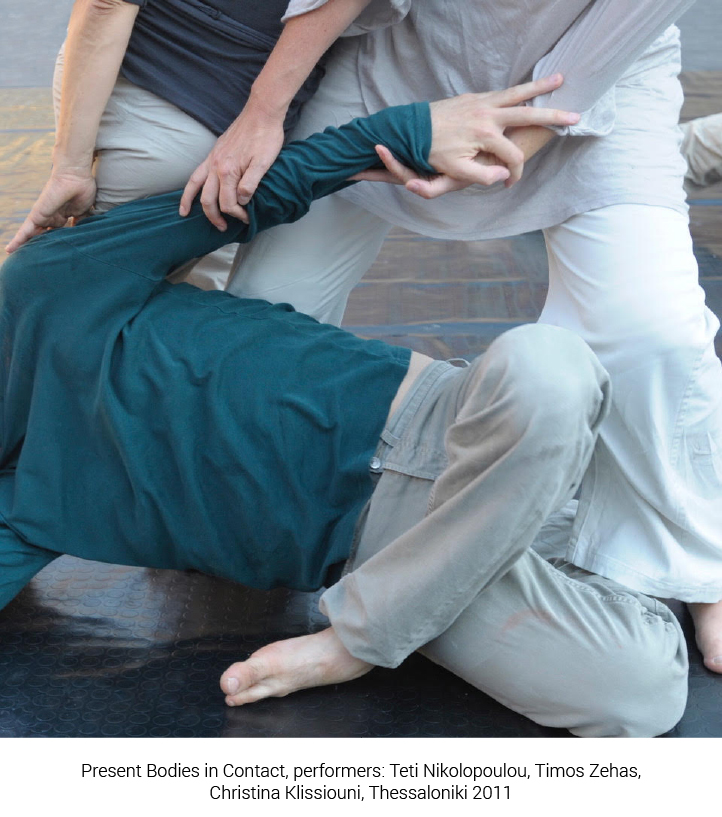Εκπαιδευτικό εργαστήριο που εξειδικεύεται στα εργαλεία της διδασκαλίας του Contact Improvisation και της συνειδητής κίνησης/αυτοσχεδιασμού, μέσα από την εμπειρία της ανταλλαγής και του μοιράσματος με συναδέλφους.